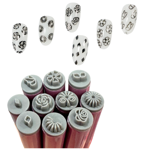 Nail Art Flower Press On Stamp Pen Set – Silicon (10pcs) 2025 New Sale Online
